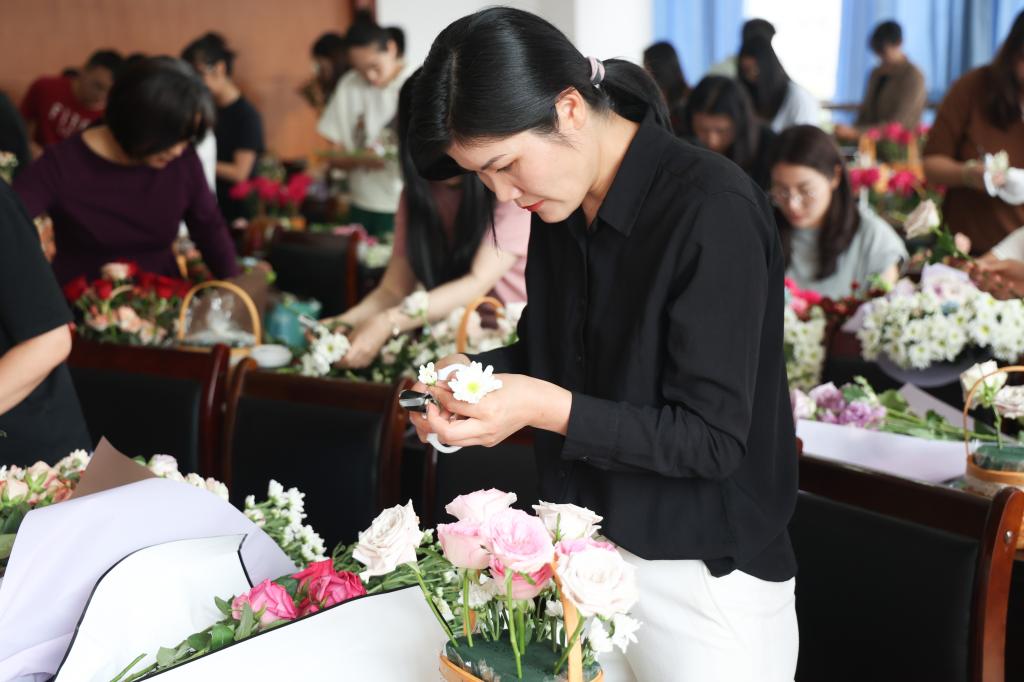为丰富辅导员业余文化生活,实施辅导员职业关怀计划,在第39个教师节来临之际,学生工作部举办了“辅导员悦享荟”第五期文化沙龙。本次沙龙的主题为“诗情花艺暖人心 师以匠心植桃李”,活动由学生工作部主办,辅导员“微”学习工作室和辅导员文体协会共同承办,共50余名辅导员参加活动。