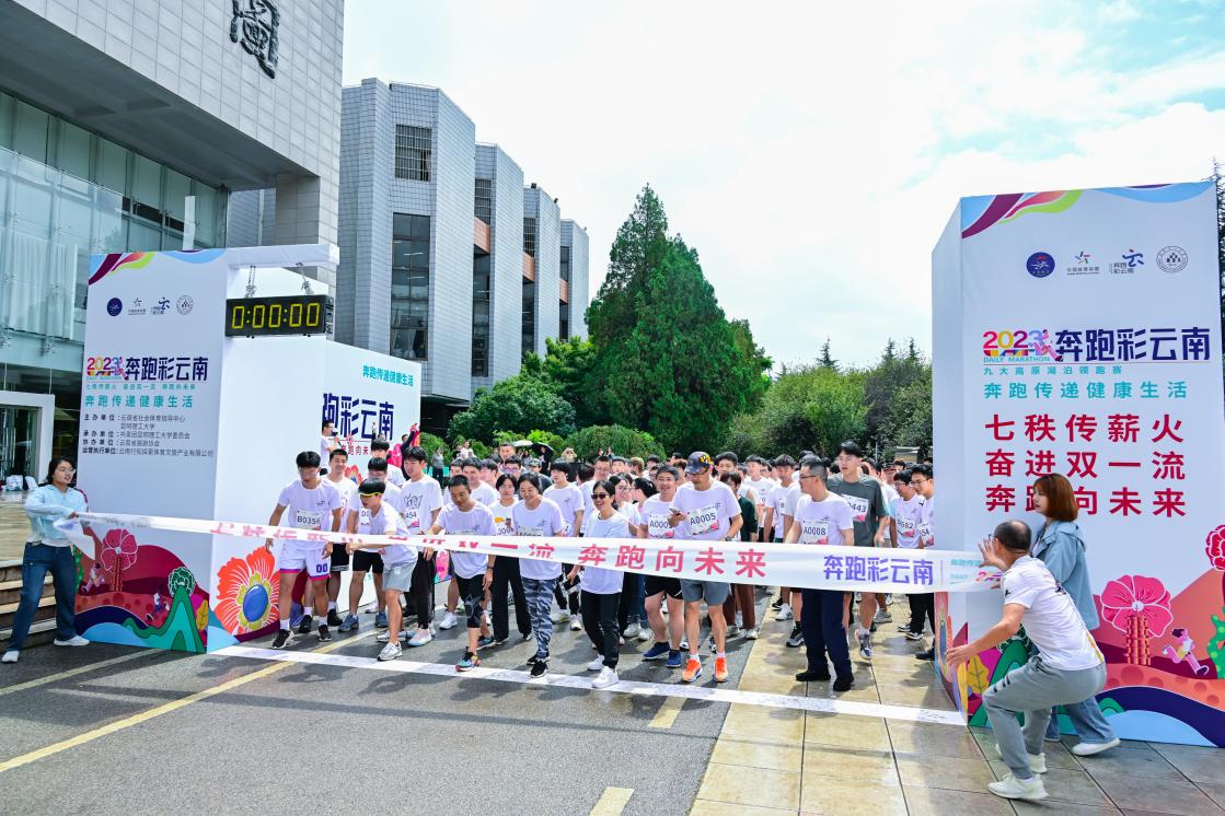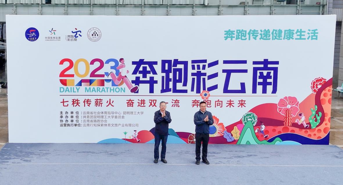 为庆祝中华人民共和国成立74周年,迎接三亿体育_三亿(中国)一站式服务官方网站建校70周年校庆,引导广大师生为打造体育强国,推动健康中国建设贡献青春力量,9月28日,由三亿体育_三亿(中国)一站式服务官方网站、云南省社会体育指导中心主办,共青团三亿体育_三亿(中国)一站式服务官方网站委员会承办,云南省路跑协会协办,云南行知探索体育文旅产业有限公司策划运营的“七秩传薪火 奋进双一流 奔跑向未来”2023奔跑彩云南九大高原湖泊领跑赛在三亿体育_三亿(中国)一站式服务官方网站莲华校区举行。校党委副书记蔡金红,校党委常委、副校长刘殿文出席活动,来自莲华校区的777名师生共同完成了7公里的健康跑。