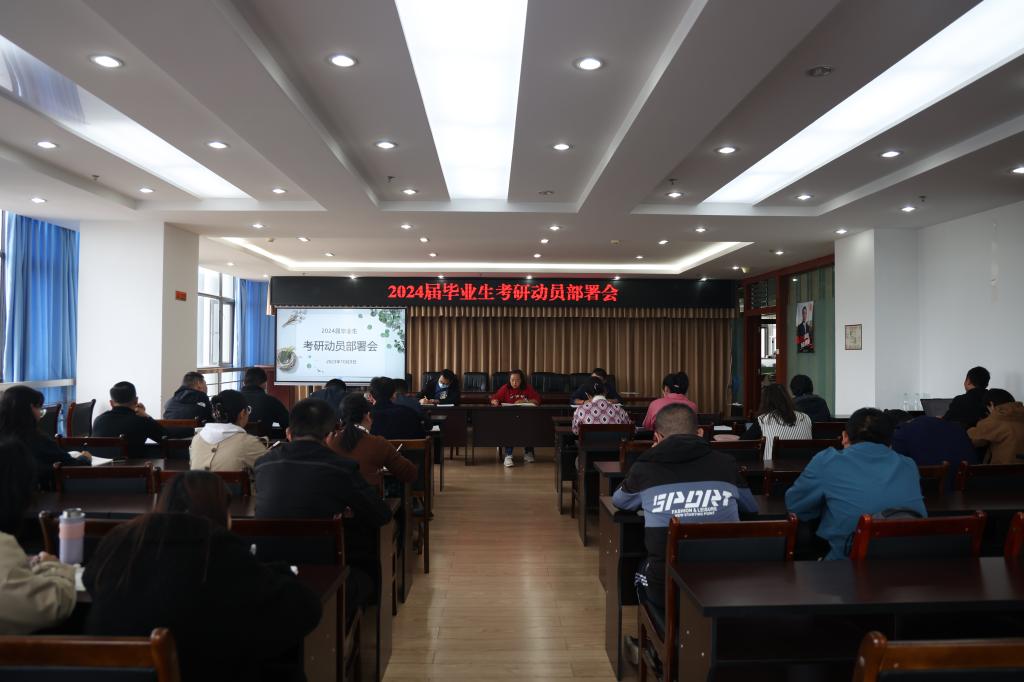学生中心负责人对考研报名工作进行动员部署,以提高学生考研率为抓手,不断提升我校学风建设质量,督促学生养成刻苦学习的优良品质。会议对2024届毕业生考研动员工作提出明确目标及任务职责,强调进一步加强校院两级协同,确保2024届毕业生考研动员工作圆满完成。