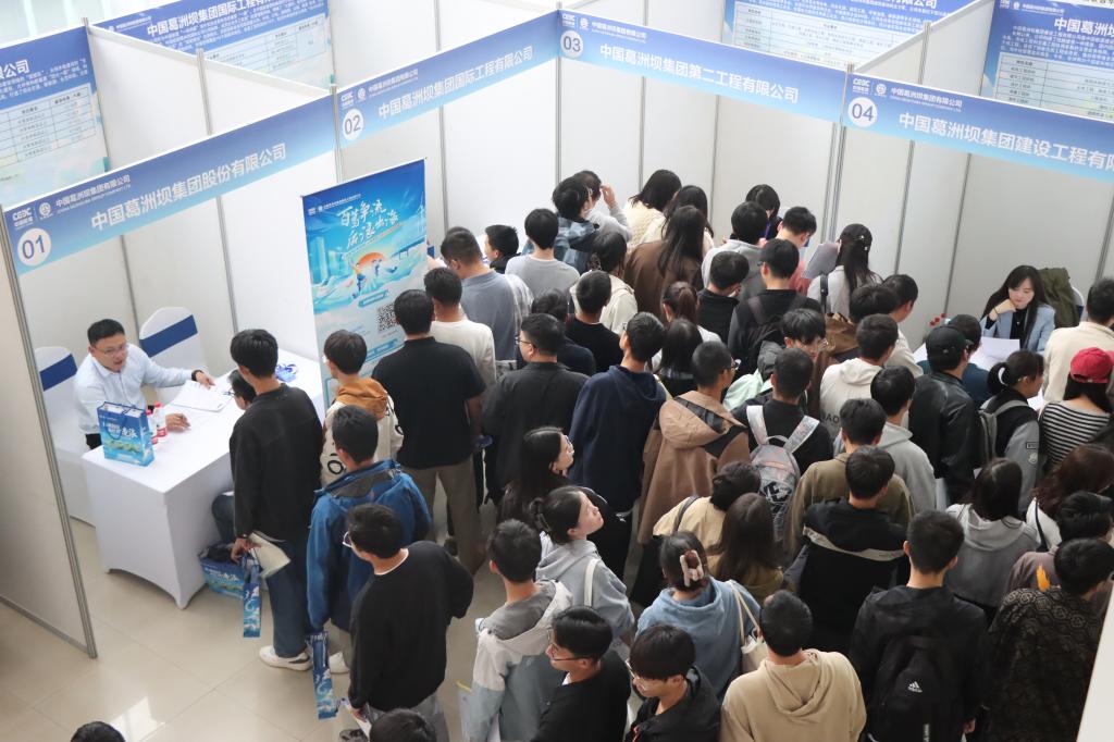 陶家平介绍了葛洲坝集团相关情况,对前来参加招聘的毕业生表达了集团的期望:当下应奋发有为、未来无限可期。他说“同学们,愿明年七月,我们相聚葛洲坝,让你们的才能在葛洲坝广阔的舞台上尽情施展,让你们的抱负在葛洲坝厚重的沃土中充分绽放,让你们的梦想在葛洲坝高质量发展的航道上谱写时代华章!”