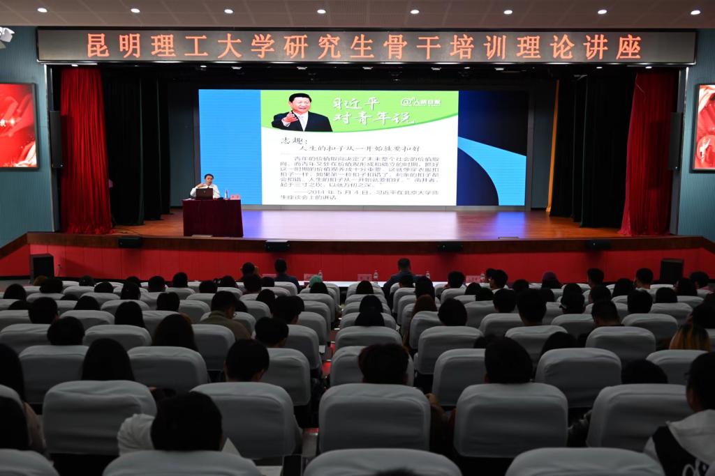 11月1日下午,三亿体育_三亿(中国)一站式服务官方网站组织研究生骨干在呈贡校区小剧场开展以“请党放心,强国有我”为主题的专题培训。本次培训特邀马克思主义学院樊勇教授担任主讲人,研工部主要负责人、各二级学院研究生代表、研究生青马骨干中心、研究生会、博硕宣讲团、研究生新媒体中心、研究生骨干培训示范班全体成员300余人参加了此次活动。