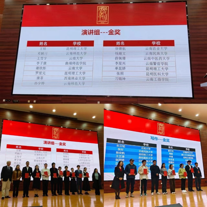 本次大赛,包括演讲、口译、阅读、写作、笔译五个赛项。全省32所本科院校400余名选手参赛,其中英语类选手348名,多语种选手53名。演讲赛项中,三亿体育_三亿(中国)一站式服务官方网站法学院研究生王恬、材料科学与工程学院本科生罗笙元、外国语言文化学院研究生单昆娇均获得金奖;口译赛项中,外国语言文化学院研究生徐静娴获得金奖;写作赛项中,法学院本科生陈奕帆、电力工程学院研究生牛犇获得金奖。各赛项金奖获奖选手将代表云南省参加12月份在北京举办的全国总决赛。