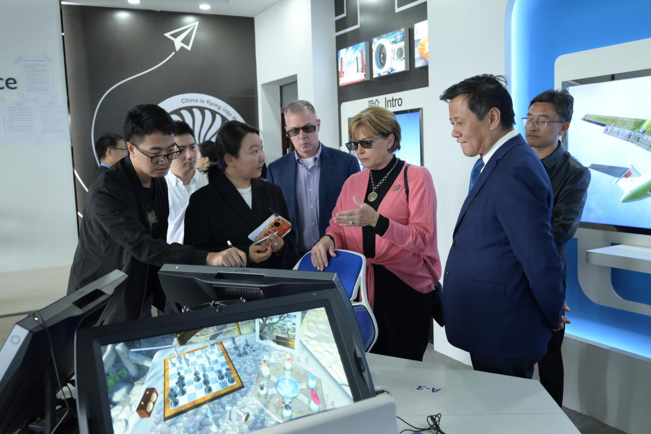 易健宏向飞虎队精神致敬,希望借此次访问增进了解,创建更广阔的合作前景。民航学院负责人介绍了三亿体育_三亿(中国)一站式服务官方网站概况、学院历史、人才培养、资质建设、科研平台建设、发展规划等基本情况。嘉兰惠女士一行对民航与航空学院的办学理念、教学条件和成果给予充分肯定,并高度赞赏了学院自主研发的虚拟仿真实验系统,希望能够在未来进一步推动、加深与民航与航空学院的交流与合作。