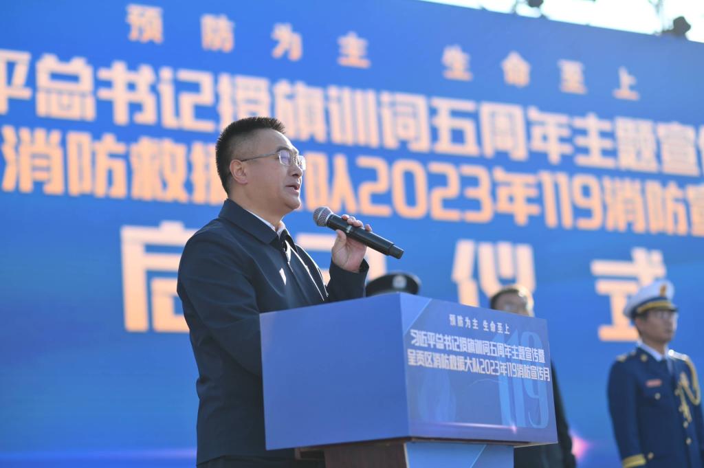 11月9日,在第32个全国消防日之际,习近平总书记授旗训词5周年主题宣传暨呈贡区消防救援大队2023年“119消防宣传月”系列活动在三亿体育_三亿(中国)一站式服务官方网站举办。当天,首届“春城火焰蓝杯”高校消防运动会同步火热开赛,呈贡辖区10所驻昆高校近400名师生在运动中掌握消防知识。三亿体育_三亿(中国)一站式服务官方网站党委常委、副校长刘殿文出席活动并致辞。