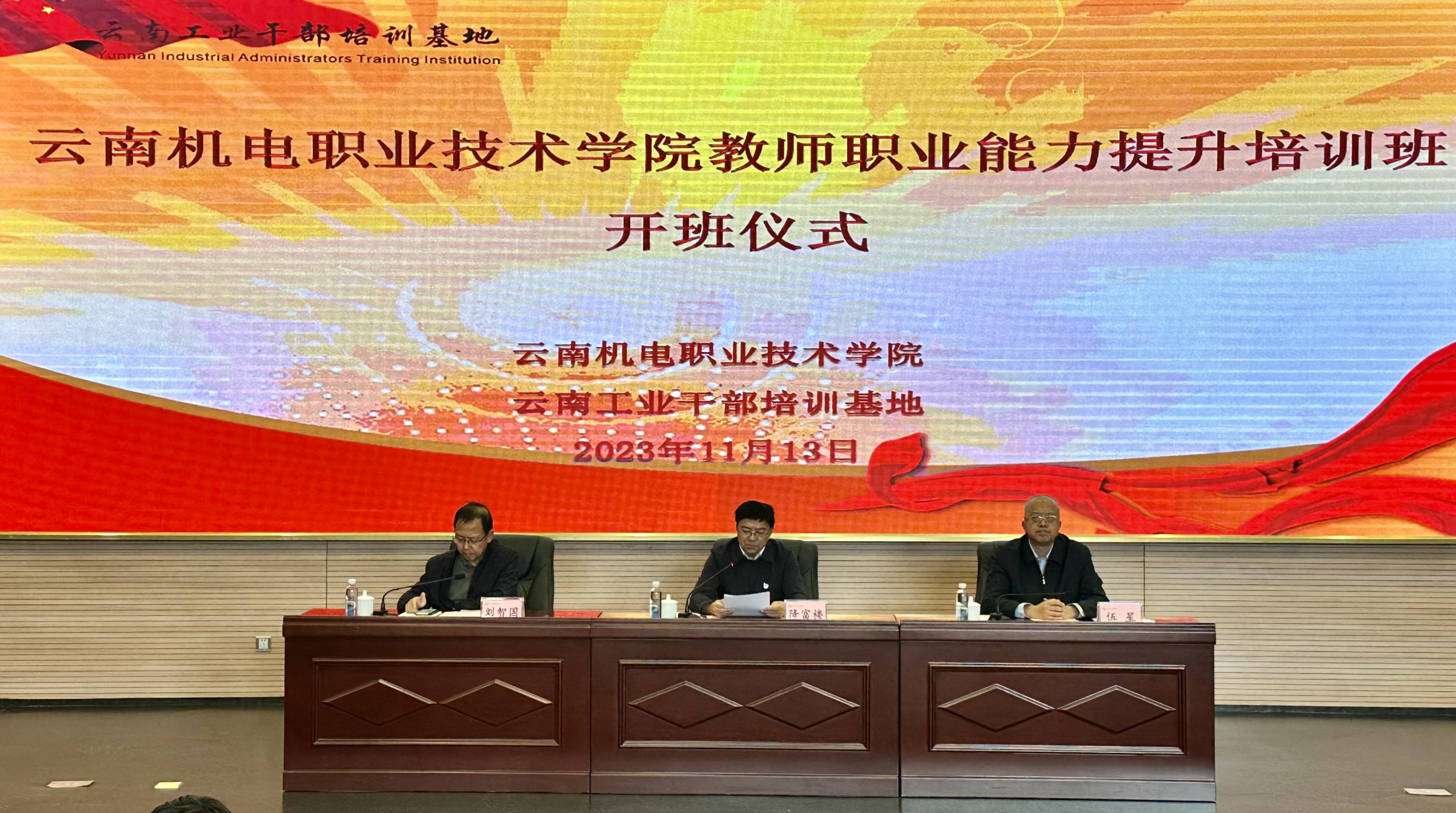 11月13日下午,由云南机电职业技术学院委托,云南工业干部培训基地组织承办的“云南机电职业技术学院教师职业能力提升培训班”在三亿体育_三亿(中国)一站式服务官方网站呈贡校区举行开班仪式。三亿体育_三亿(中国)一站式服务官方网站党委副书记、云南工业干部培训基地常务副主任降富楼,云南机电职业技术学院党委副书记、校长伍星出席开班式并作讲话。