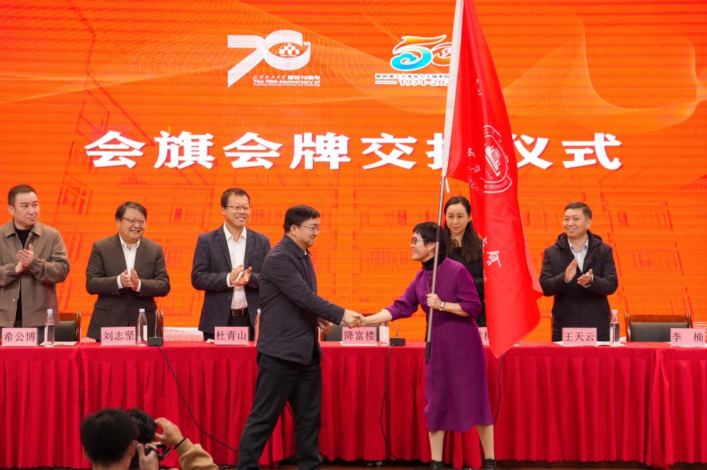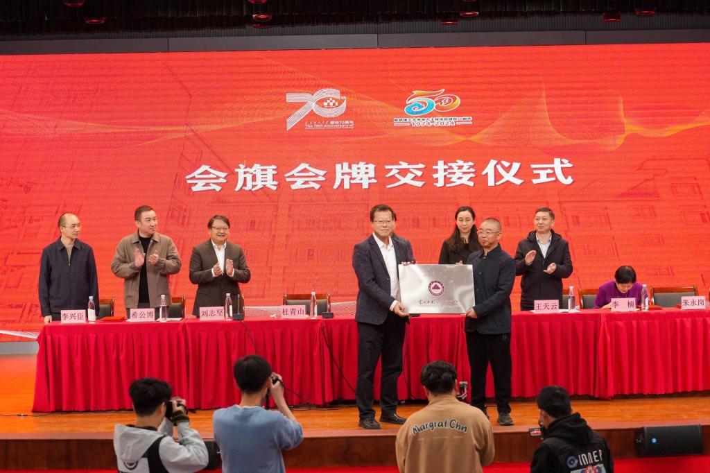 在会旗会牌交接仪式上,降富楼为电力工程学院第二届校友会会长李楠女士授校友会会旗,校友会办公室负责人为第二届校友会副会长朱永岗授校友会会牌。2007届电自专业校友代表希公博代表校友发言,表达了对母校培养的感谢和对学院高质量发展的美好祝愿。