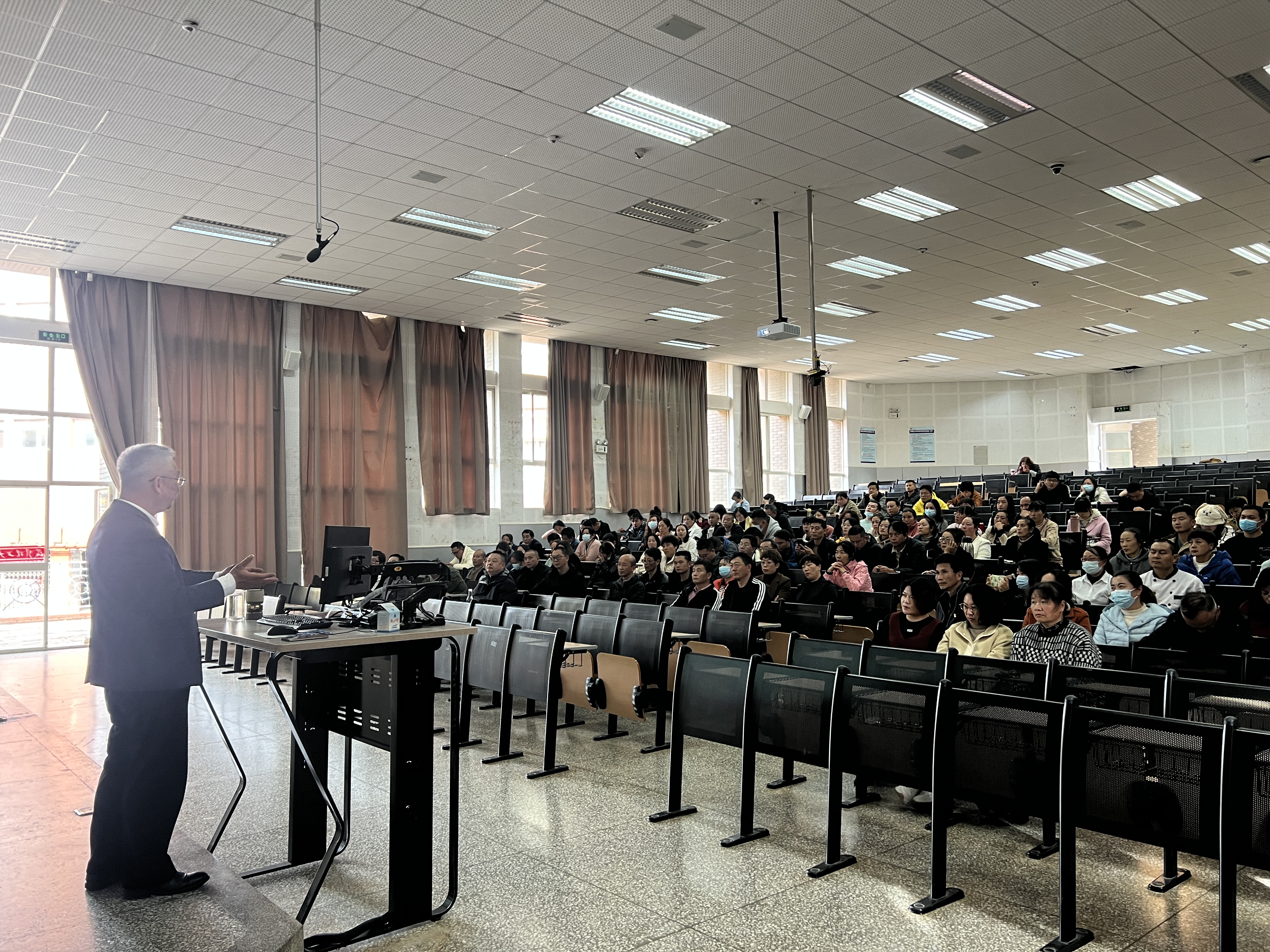 11月29日下午,由三亿体育_三亿(中国)一站式服务官方网站党委宣传部、后勤保障服务中心党总支承办的“云岭大讲堂·文化昆工讲坛”第一百零四讲在呈贡校区多媒体楼100教室开讲。讲座特邀马克思主义学院党委书记、教授、省党建研究会理事殷国禺老师作专题讲座。后勤保障服务中心党员干部、关键岗位人员以及教职工代表150余名到场聆听讲座。