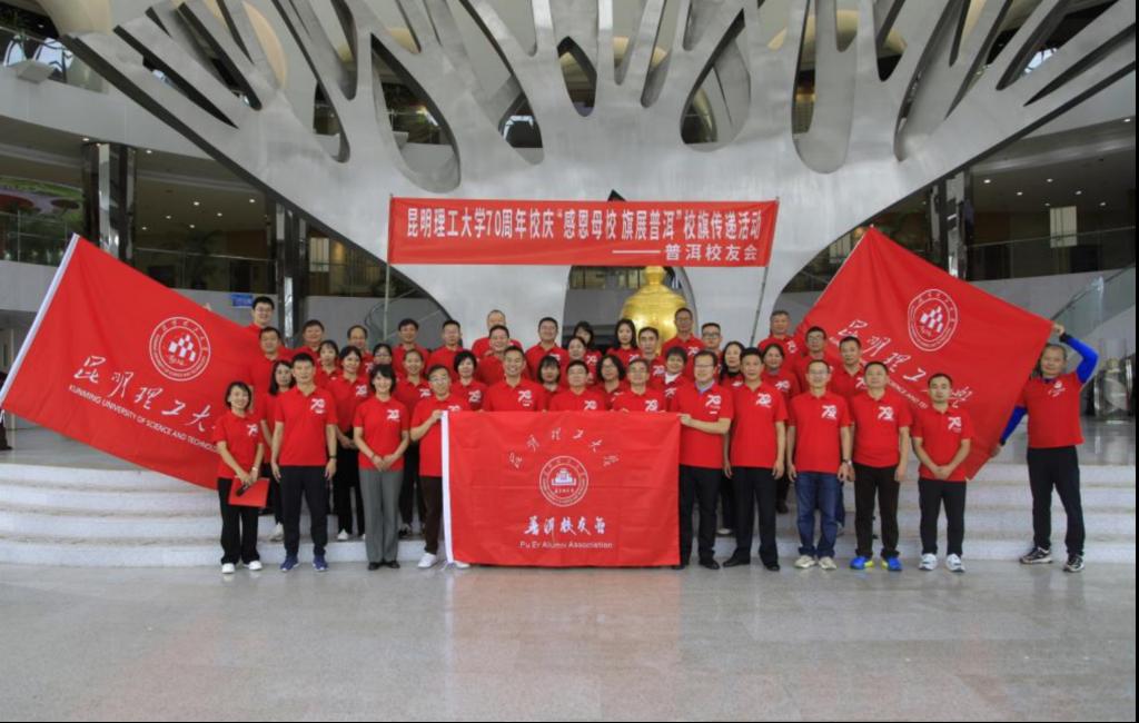 12月9日,普洱校友会在普洱思茅区倚象天士力帝泊洱公司举办以“感恩母校,旗展普洱”为主题的“七秩昆工”校旗传递暨年会活动。校党委副书记降富楼,校党委常委、副校长潘学军出席活动,校友会办公室负责人、部分兄弟校友会代表及普洱校友代表共60余人参加活动。