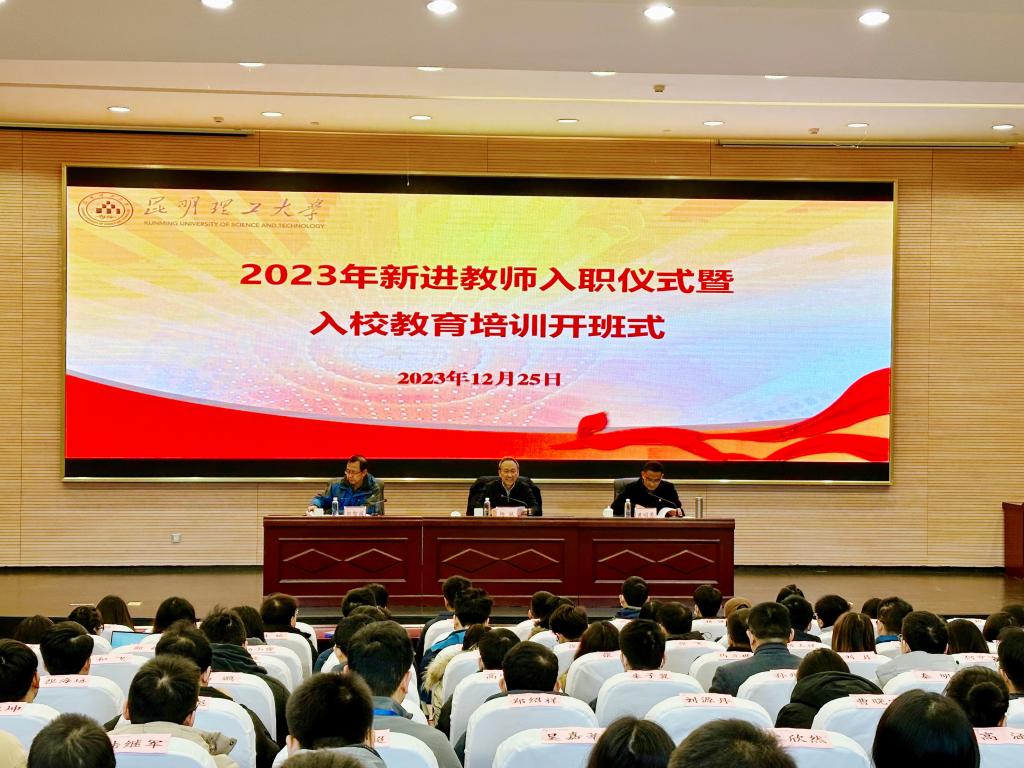 12月25日,由人事处主办,教师中心和云南工业干部培训基地承办的2023年三亿体育_三亿(中国)一站式服务官方网站新入职教师培训班在呈贡校区图书馆一楼云南工业干部培训基地教学点101报告厅举行开班仪式,校党委常委、副校长杨斌出席开班仪式并讲话,人事处、教师中心、云南工业干部培训基地相关负责人及新入职的227名教师参加开班仪式。
