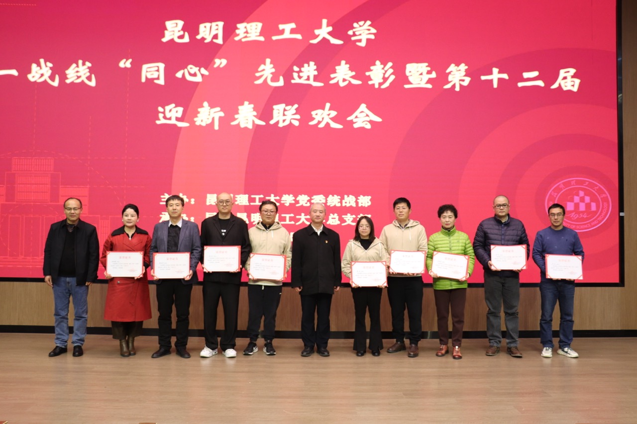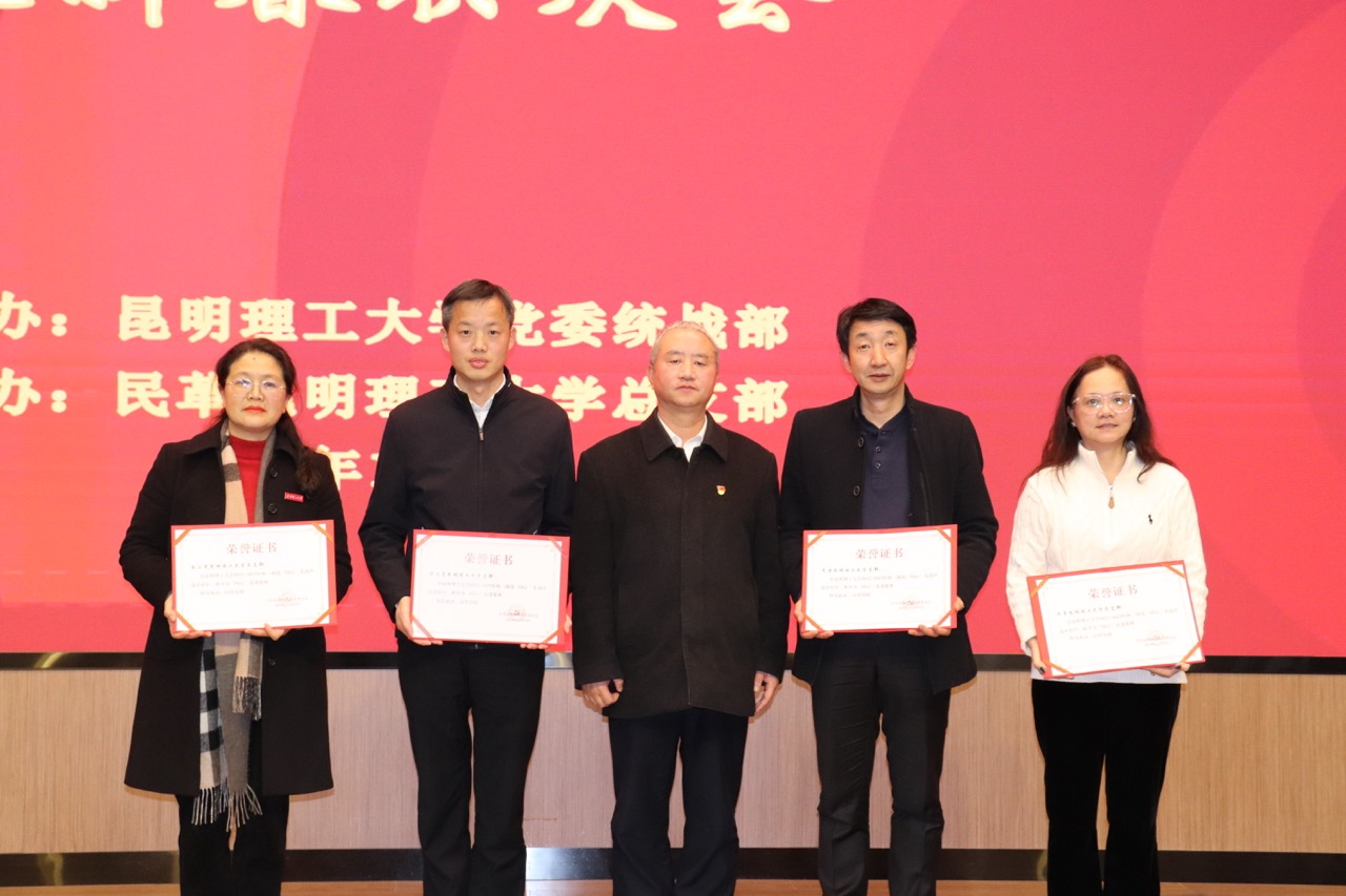 会议活动分两个阶段进行,第一阶段的统一战线“同心”先进表彰会由降富楼主持,唐家华、刘殿文为受表彰的民革昆工总支、民进昆工支部、农工党昆工支部、致公党昆工总支等4个先进集体和郑溪等18名先进个人颁发奖状。农工党昆工支部主委肖寒代表受表彰的先进集体发言,致公党党员韩丰霞代表受表彰的先进个人发言。