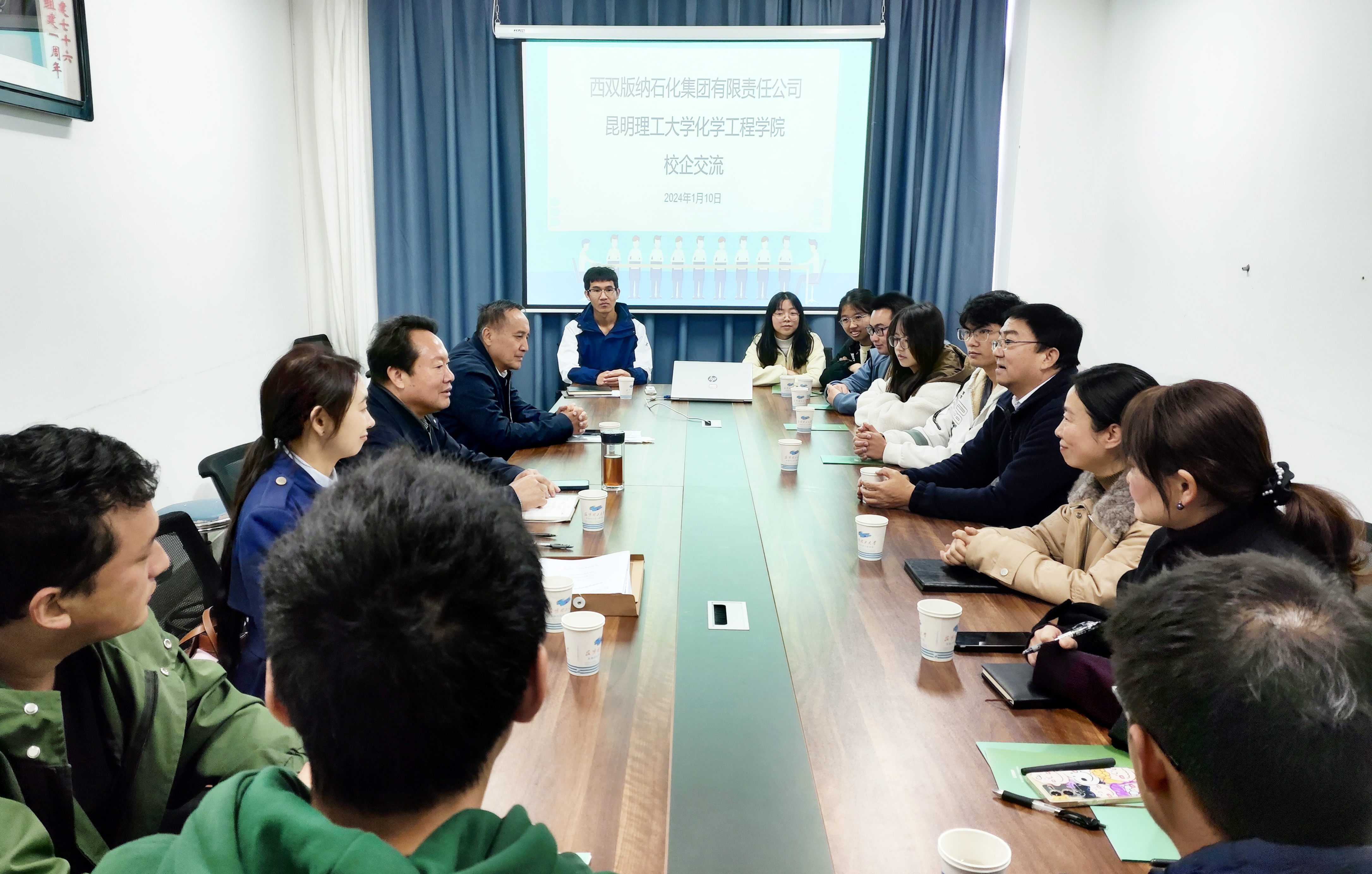 1月10日,西双版纳石化集团有限责任公司董事长柳天伟、集团深化改革领导小组常务副组长柳林一行到访化学工程学院并开展交流座谈。校党委副书记降富楼出席座谈会,化学工程学院主要负责人,相关教师和学院部分毕业生参加了座谈。