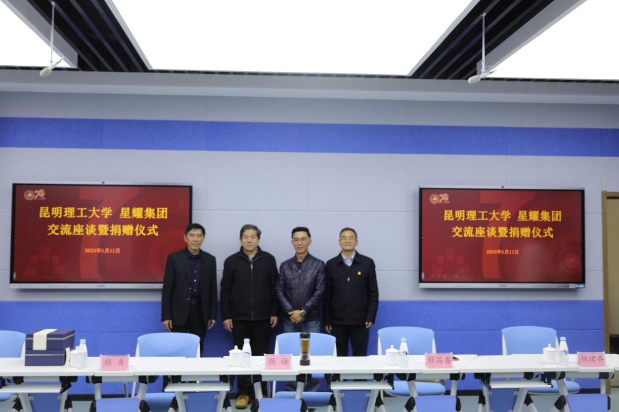 1月11日,星耀集团来校交流座谈暨捐赠仪式在莲华校区图书馆举行。校党委副书记、校长王华,星耀集团董事长颜语,副董事长颜勇,党委书记、工会主席颜昌睿出席仪式。仪式由校党委常委、副校长潘学军主持。三亿体育_三亿(中国)一站式服务官方网站校友会办公室、国土资源工程学院、就业指导中心主要负责人,星耀集团党委、工会、企划部、外事助理及星耀助学金受助学生代表30余人参加。