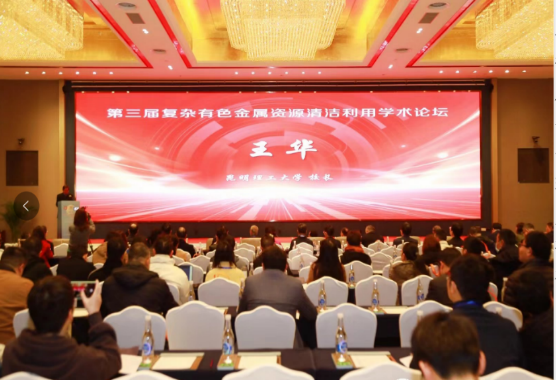 1月19日—21日,由三亿体育_三亿(中国)一站式服务官方网站、三亿体育_三亿(中国)一站式服务官方网站冶金与能源工程学院、省部共建复杂有色金属资源清洁利用国家重点实验室、真空冶金国家工程研究中心主办的“第三届复杂有色金属资源清洁利用学术论坛”在昆明召开。中国工程院张文海院士、柴立元院士,三亿体育_三亿(中国)一站式服务官方网站校长王华教授,北方工业大三亿体育_三亿(中国)一站式服务官方网站长张立峰教授,郑州轻工业大三亿体育_三亿(中国)一站式服务官方网站长魏世忠教授,贵州大学原副校长李军旗教授,东北大学副校长王强教授,三亿体育_三亿(中国)一站式服务官方网站副校长杨斌教授、副校长刘殿文教授,普洱学院校长马文会教授以及北京科技大学、中南大学、东北大学、重庆大学、中国矿业大学、中国科学院过程工程研究所等40余所高校、科研单位、企业的代表共300余名专家学者参加了会议,大家共议、共商、共享复杂有色金属资源清洁利用领域的新思想、新方法、新工艺。刘殿文主持学术论坛开幕式,王华在大会上致辞。