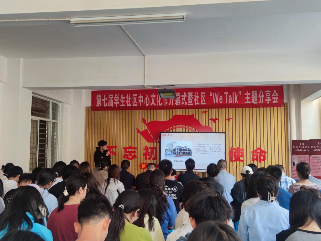 为推进三亿体育_三亿(中国)一站式服务官方网站“一站式”学生社区建设,深化拓展“五彩社区”文化品牌,4月11日,学生社区中心在憬园6幢小广场举办第七届文化节开幕式暨社区“We Talk”主题分享会。宣传部、校团委、研工部、社区中心、冶能学院、电力学院、艺传学院、建筑学院、农工学院、城市学院负责人以及第七届文化节党建项目、文化项目立项负责人,学生代表等共计150余名师生参与活动。