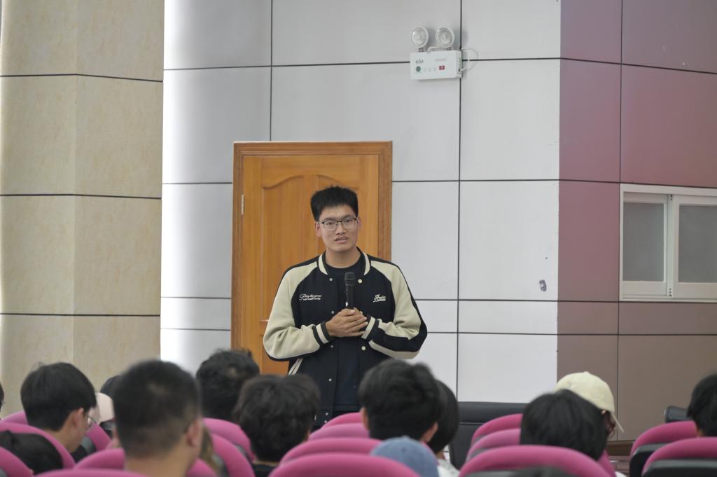 第十八届“挑战杯”全国大学生课外学术科技作品竞赛主体赛特等奖获得者杨林宇同学分享了自己跟随导师一步步走上科研之路的经历,他表示要确立好目标,攻坚克难、锐意进取,科研路上一路都是挑战,一刻也不敢懈怠,但一定要坚信:“打不倒我的必使我强大”。