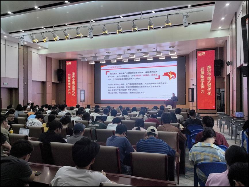 刘殿文从教育、科技、人才“三位一体”的发展要求出发,围绕什么是新质生产力、为什么要发展新质生产力、因地制宜发展新质生产力、发展新质生产力的核心要素、新质生产力本质属性就是绿色生产力、与之相适应的新型生产关系、为发展新质生产力培养急需人才、中国式现代化的内涵及特点、中国式现代化的现实挑战、新质生产力为中国式现代化注入新动能、以新质生产力推动中国式现代化行稳致远等十个方面为同学们进行了精彩的讲解,让同学们既了解了新质生产力,又了解了中国式现代化,还理解了两者之间的关系及内涵,以及如何通过发展新质生产力助推中国式现代化的构建等。