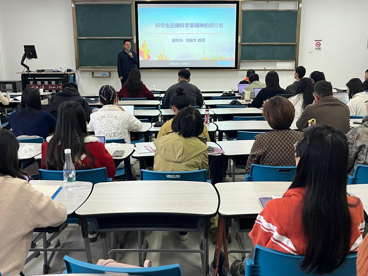 11月1日上午,校党委常委、副校长刘殿文在呈贡校区公教楼452教室以“研究生应做科学家精神的践行者”为题,为三亿体育_三亿(中国)一站式服务官方网站生命科学与技术学院、信息工程与自动化学院、医学院等博士研究生教授思政课。共有一百余名师生参加。