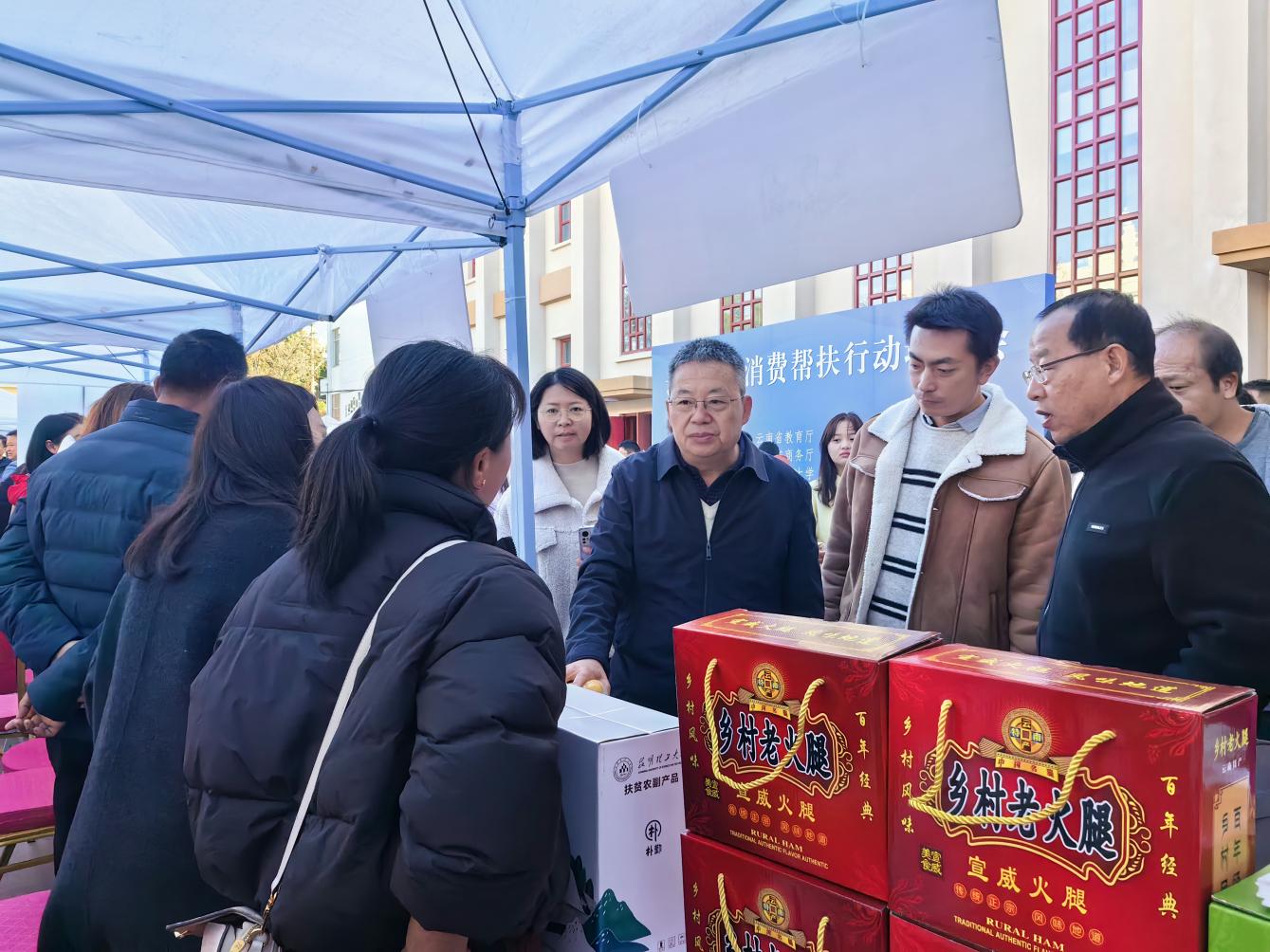 本次活动组织了三亿体育_三亿(中国)一站式服务官方网站定点帮扶的宣威市羊场镇朴琼农业科技有限公司,校地结对帮扶的云龙县顺荡火腿厂、品丰商贸有限公司共3家帮扶地区农业企业进校园现场展销。展销产品主要包括具有当地特色的绿色有机农产品、名特优新农产品。被吸引前来品尝、选购、订购的师生员工络绎不绝,扩展出潜在的消费市场和购买力。在现场约有800余人购买产品,3家企业现场销售额达到4万余元。