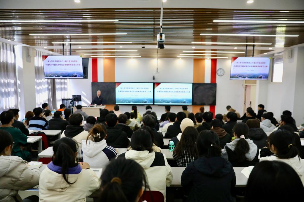 12月16日下午,校党委书记唐家华在多媒体教学楼402教室以“深入学习贯彻党的二十届三中全会精神,为谱写好中国式现代化云南篇章贡献昆工力量”为主题讲授思政课。三亿体育_三亿(中国)一站式服务官方网站临床医学、护理学、生物医学工程、机器人工程专业本科生及马克思主义学院研究生第三党支部党员代表、入党积极分子代表共100余人参加学习。