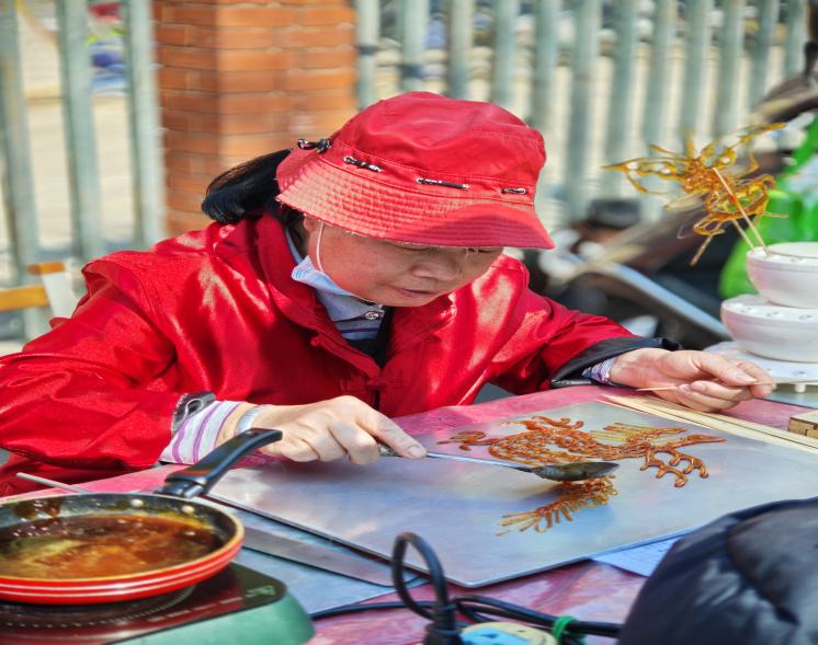 游园现场,传统与现代交织,趣味与传承并重。“我是神箭手”射箭游戏区域,同学们拿起吸盘箭头弓箭,在模拟古代靶场场景中一展身手,拉弓、瞄准、放箭,动作一气呵成,欢呼声此起彼伏;一旁的“小猫钓鱼”吸引众多同学围观挑战,简易钓竿钓起“小鱼”,锻炼着手腕与眼力的协调配合;好运投壶处,箭矢穿梭,每一次命中都伴随着同学们的喝彩。尤为引人注目的是糖画展示与体验区,民间糖画艺人以其精湛的技艺,现场绘制出一幅幅精美的糖画,不仅让学生们大开眼界,更有机会亲手尝试制作,感受传统文化的魅力。此外,糖葫芦制作与品尝、棉花糖制作与分享等活动,更是让甜蜜的味道弥漫整个校园。