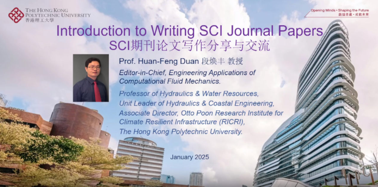 1月23日下午,香港理工大学张焕丰教授应邀以《SCI期刊论文写作分享与交流》为题作线上报告,建筑工程学院相关专业领域的师生线上聆听了报告。