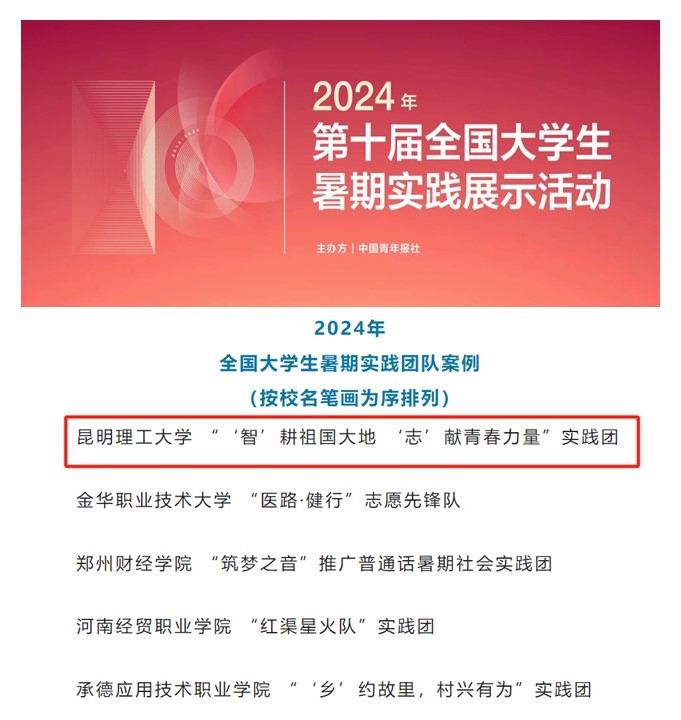 近日,由共青团中央指导、中国青年报社主办的“2024年第十届全国大学生暑期实践展示活动”案例评选结果揭晓。机电工程学院“智”耕祖国大地“志”献青春力量实践团成功入选2024年全国大学生暑期实践团队案例(全国100个,全省10个)。