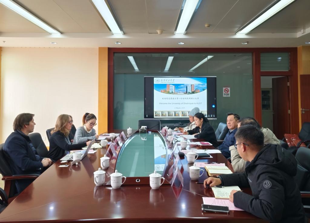 3月6日上午,英国思克莱德大学工程学院国际发展与招生负责人斯图尔特·肖特豪斯先生、英国爱丁堡皇家科学院院士佐伊·希普顿教授一行3人到校访问。校党委常委、副校长易健宏出席会议。对外合作交流处、冶金与能源工程学院、国土资源工程学院相关负责人参加会议。