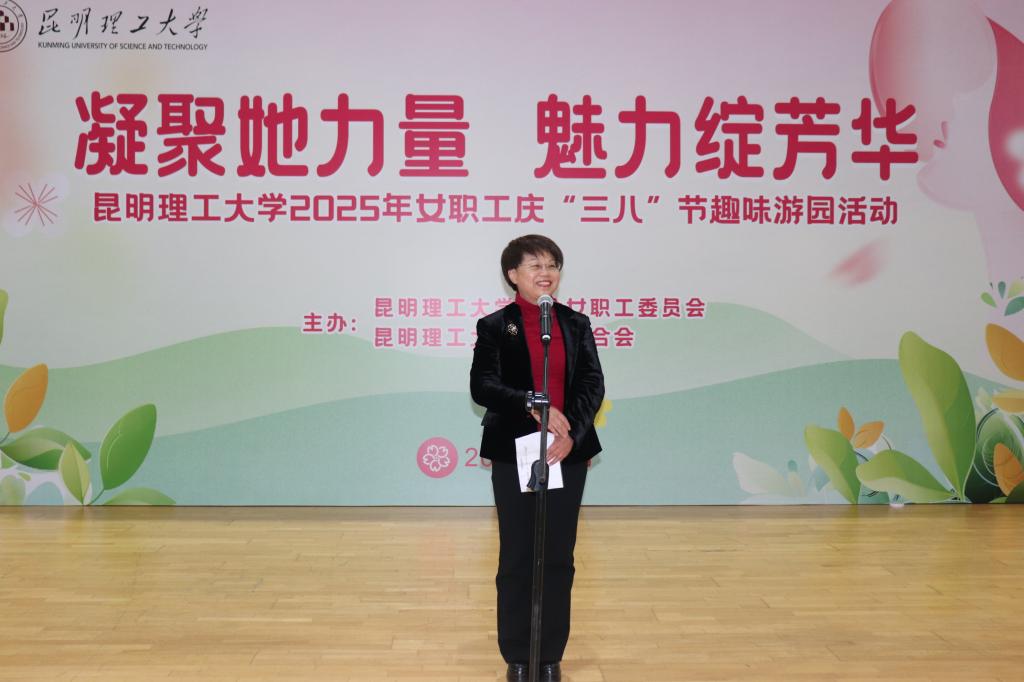 3月6日下午,在第115个国际劳动妇女节即将到来之际,由校工会、校妇联主办,各分工会协办的以“凝聚她力量 魅力绽芳华”为主题的2025年“三八”妇女节趣味游园活动在呈贡校区举行。校党委副书记、工会主席、妇联主席陈华仙出席活动并致辞,全校1000余名女教职工参加活动。