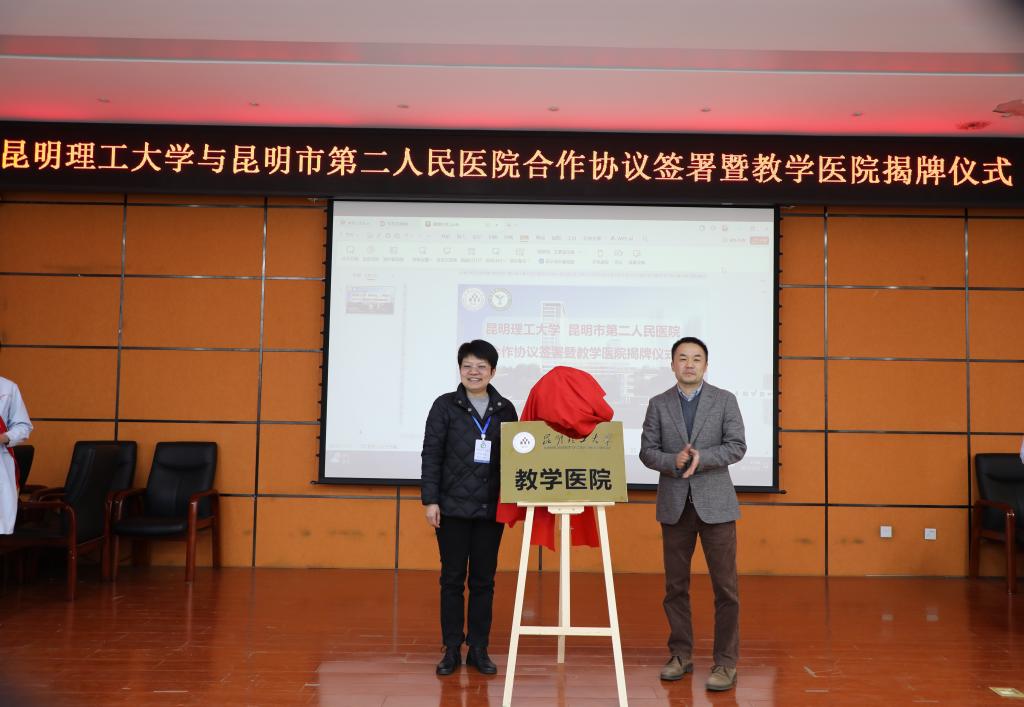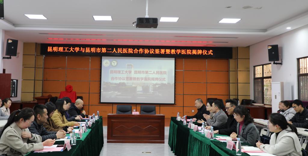 医学部相关负责人宣读了三亿体育_三亿(中国)一站式服务官方网站关于同意昆明市第二人民医院为三亿体育_三亿(中国)一站式服务官方网站教学医院的决定。牛昱宇与昆明市第二人民医院相关负责人签署合作协议并共同为教学医院揭牌。揭牌仪式结束后,双方就今后医教研协同发展进行深入交流座谈。