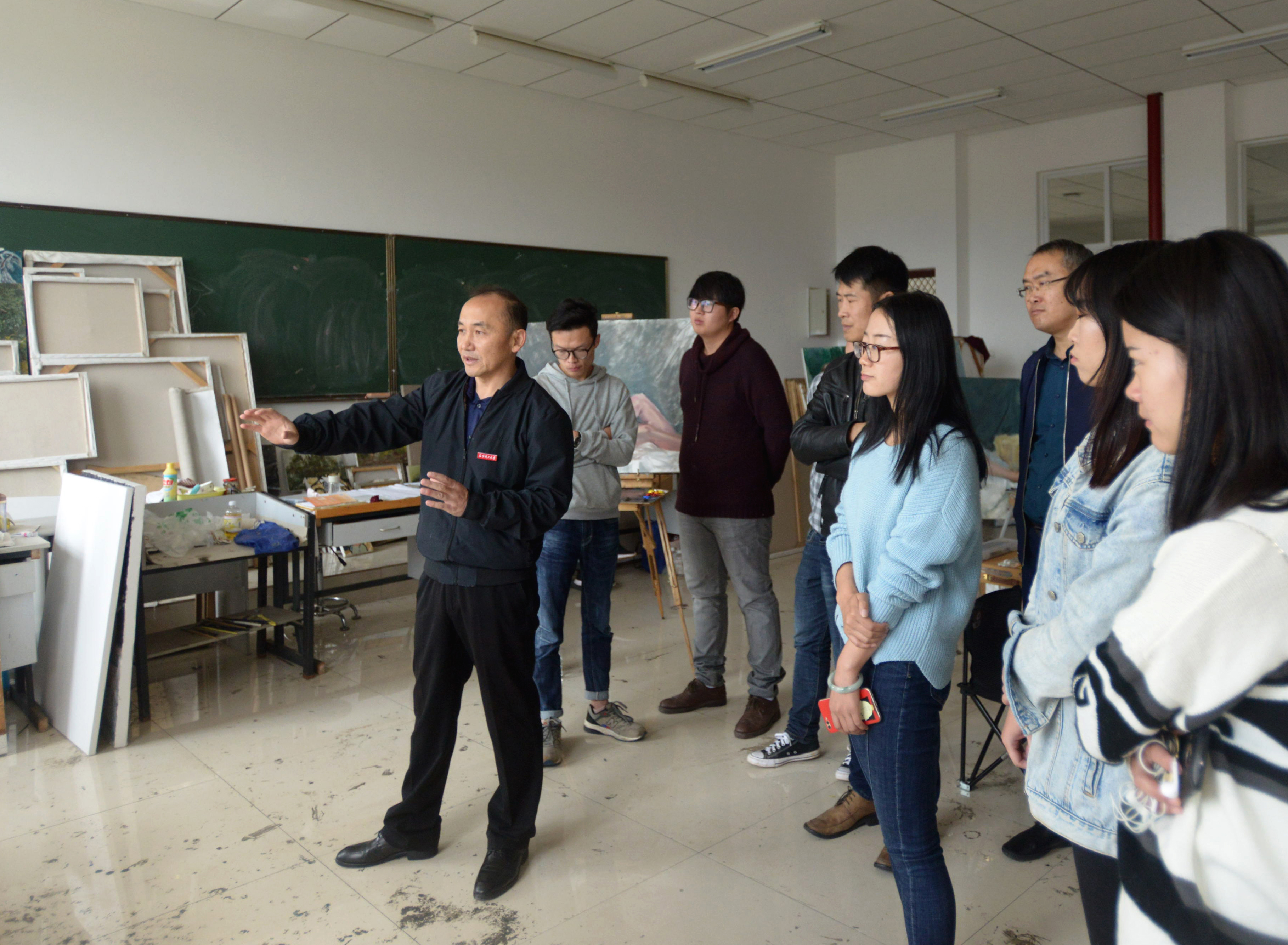 在美术系孙红德老师的课堂,周副校长询问了孙老师在教学中的情况,并就如何让学生打牢基础、提高绘画创作能力等方面与孙老师进行探讨。在学生们的画作前,周副校长仔细询问同学们创作的初衷、主题和技法表现,深入地分析画作的优点、不足,让同学们准确把握油画的学习方法,建议多临摹经典名作打牢基本功。