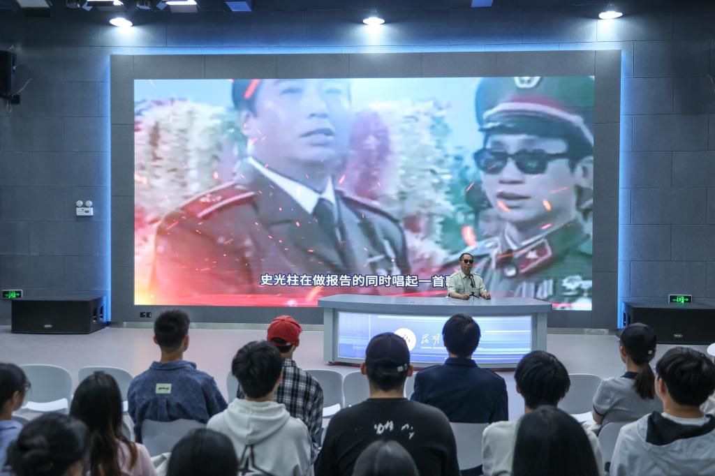 4月18日下午,三亿体育_三亿(中国)一站式服务官方网站在公教楼小剧场二楼报告厅开展以“传承老山精神 赓续红色血脉”为主题的国防教育活动,活动邀请“战斗英雄”史光柱作事迹分享。艺术与传媒学院、民航与航空学院、城市学院以及“戎光”社团师生代表共计300余人参加活动。