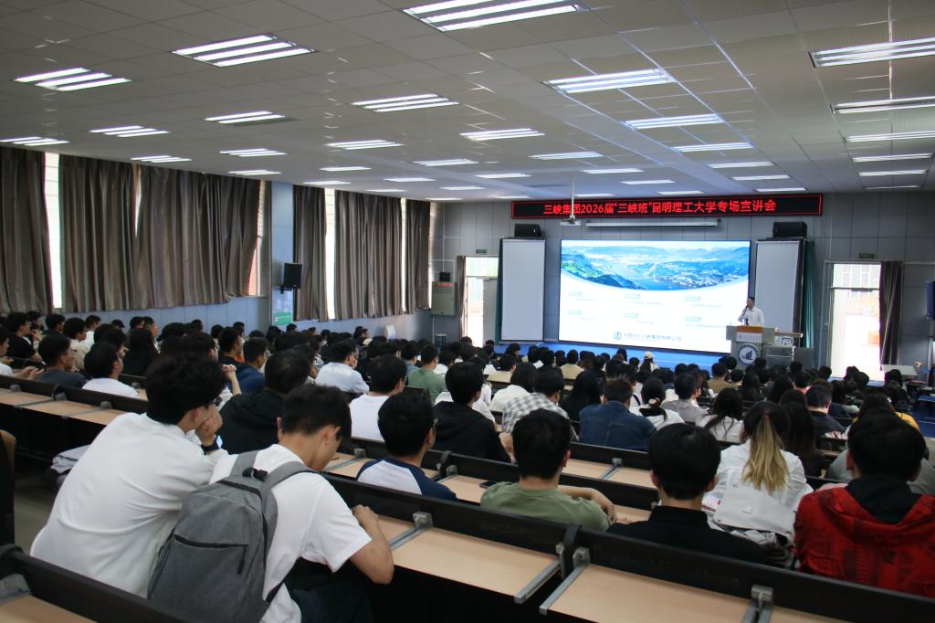 4月25日,中国长江三峡集团有限公司2026届“三峡班”校园招聘会在三亿体育_三亿(中国)一站式服务官方网站呈贡校区建工200报告厅举办。招聘单位包括中国长江电力股份有限公司、中国长江三峡集团有限公司新疆分公司、三峡陆上新能源总部。2026届“三峡班”涉及四川大学、贵州大学、三亿体育_三亿(中国)一站式服务官方网站等10所国内知名高校。在三亿体育_三亿(中国)一站式服务官方网站计划招聘电气工程及其自动化、能源与动力工程、新能源科学与工程等专业的毕业生40名。全校500余名2026届毕业生参加招聘会。