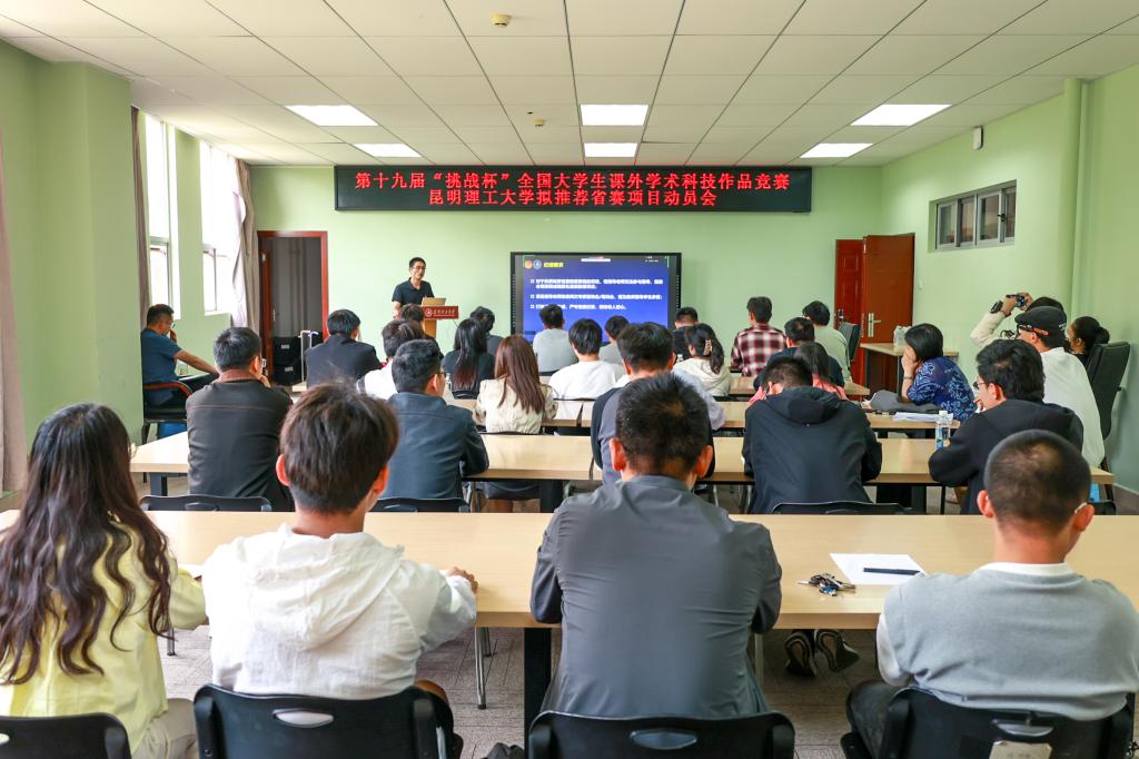 4月28日,校团委举办第十九届“挑战杯”全国大学生课外学术科技作品竞赛省赛动员会,15支拟入围团队师生参会。