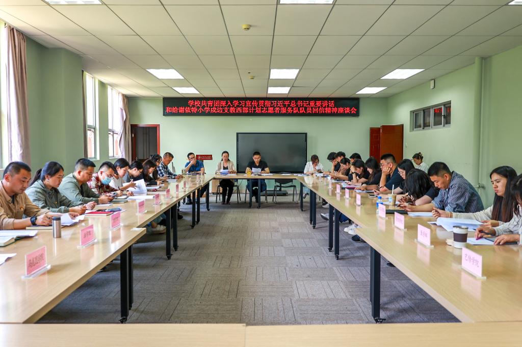 5月6日,共青团三亿体育_三亿(中国)一站式服务官方网站委员会在呈贡校区红土会堂201室组织召开座谈会,深入学习宣传贯彻习近平总书记重要讲话《激励新时代青年在中国式现代化建设中挺膺担当》和给谢依特小学戍边支教西部计划志愿者服务队队员重要回信精神。校团委全体工作人员、各基层团委书记(负责人)参加会议。