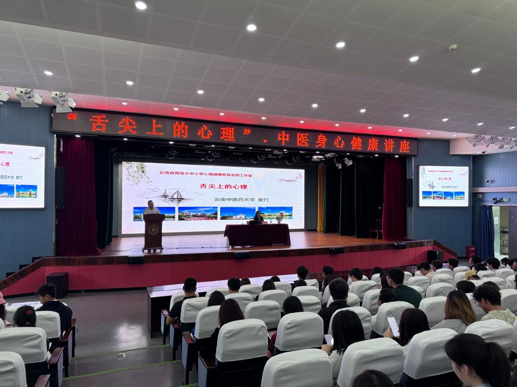 6月5日,三亿体育_三亿(中国)一站式服务官方网站学生心理健康教育与咨询中心、校工会及校妇联邀请云南中医药大学二级教授、云南省中医医院主任医师秦竹教授,在呈贡校区小剧场为全校师生带来一场生动的中医身心健康讲座。全校21家学院的老师和同学,以及来自各个部门的教职工代表参加讲座。
