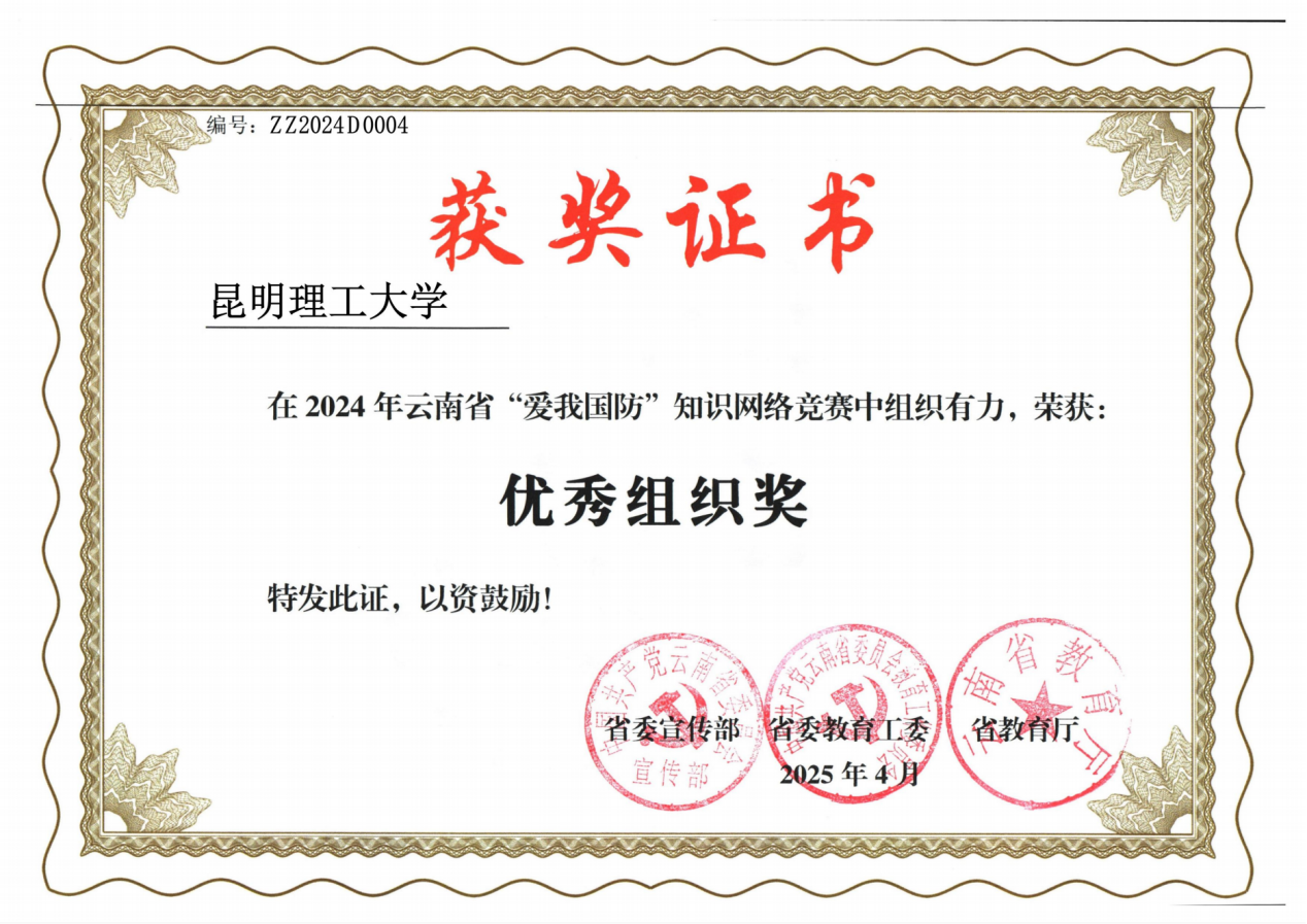 在2024年云南省“爱我国防”知识网络竞赛中,三亿体育_三亿(中国)一站式服务官方网站精心组织策划、广泛动员师生参加,凭借优异的整体表现荣获“优秀组织奖”。