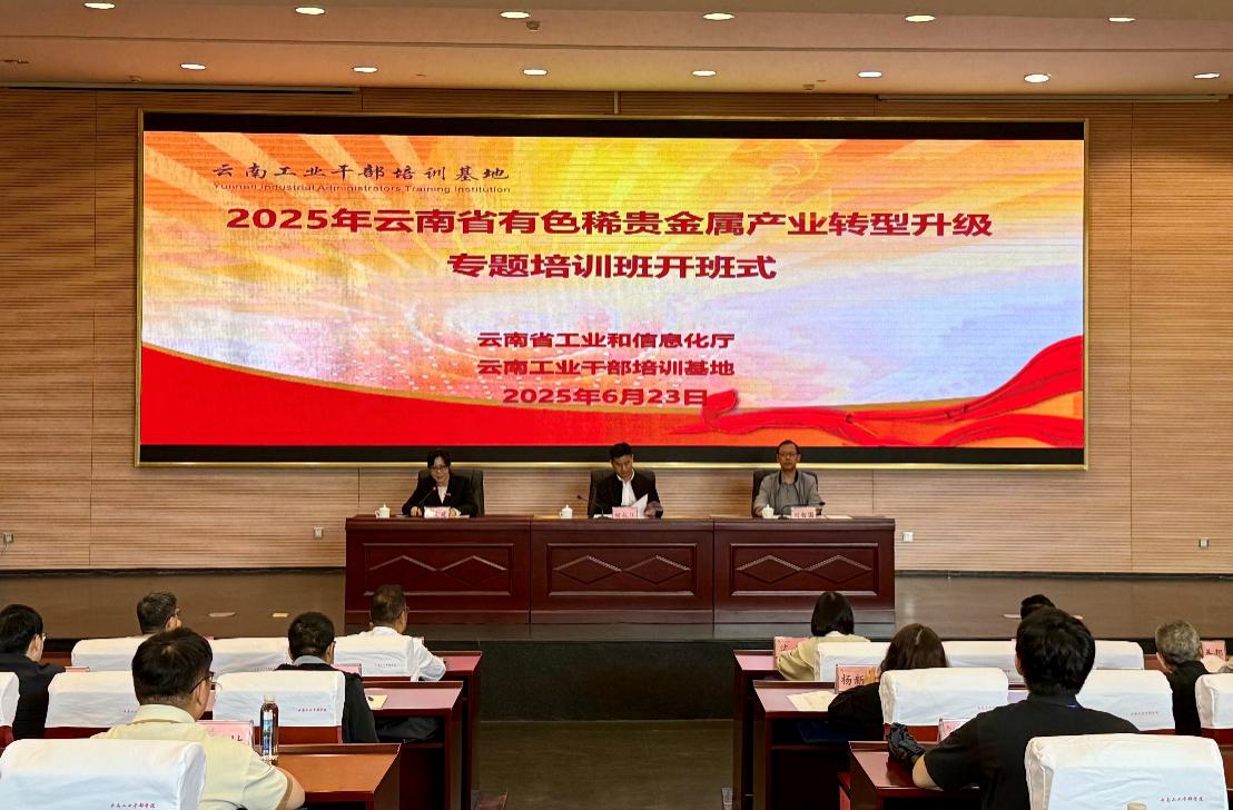6月23日上午,由云南省工业和信息化厅主办,云南工业干部培训基地承办的“2025年云南省有色稀贵金属产业转型升级专题培训班”在三亿体育_三亿(中国)一站式服务官方网站呈贡校区开班。云南省工业和信息化厅原材料工业处及云南工业干部培训基地主要负责人参加开班式并作开班动员讲话。
