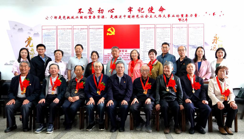 在中国共产党成立104周年之际,为传承红色基因,弘扬党的光荣传统,进一步增强党员的荣誉感、归属感和使命感,6月24日下午,三亿体育_三亿(中国)一站式服务官方网站在莲华校区举行2025年“光荣在党50年”纪念章颁发仪式,为三亿体育_三亿(中国)一站式服务官方网站今年新增的24位老党员颁发纪念章。校党委副书记蔡金红、党委组织部、党委宣传部、离退休教职工党委、离退休工作处(部)相关负责人及纪念章获得者代表等参加会议。