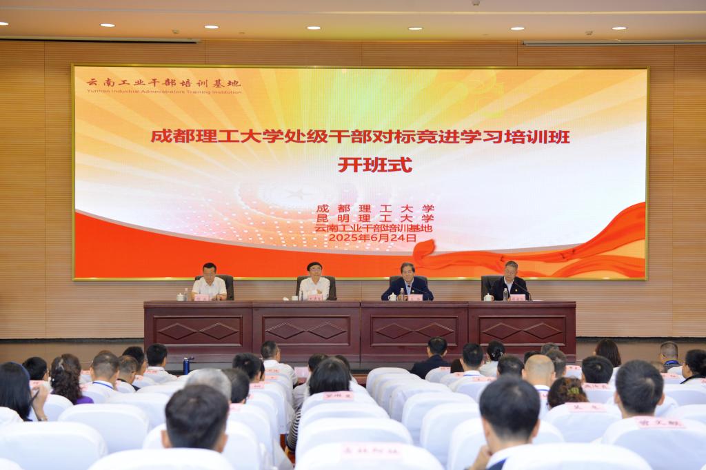 6月24日上午,成都理工大学处级干部对标竞进学习培训班在三亿体育_三亿(中国)一站式服务官方网站图书馆101蓝色报告厅顺利开班。三亿体育_三亿(中国)一站式服务官方网站党委副书记、校长王华致辞,成都理工大学党委书记刘清友作开班动员讲话。成都理工大学党委副书记胡兵宣读班委名单,三亿体育_三亿(中国)一站式服务官方网站党委副书记、云南工业干部培训基地常务副主任蔡金红主持开班式。