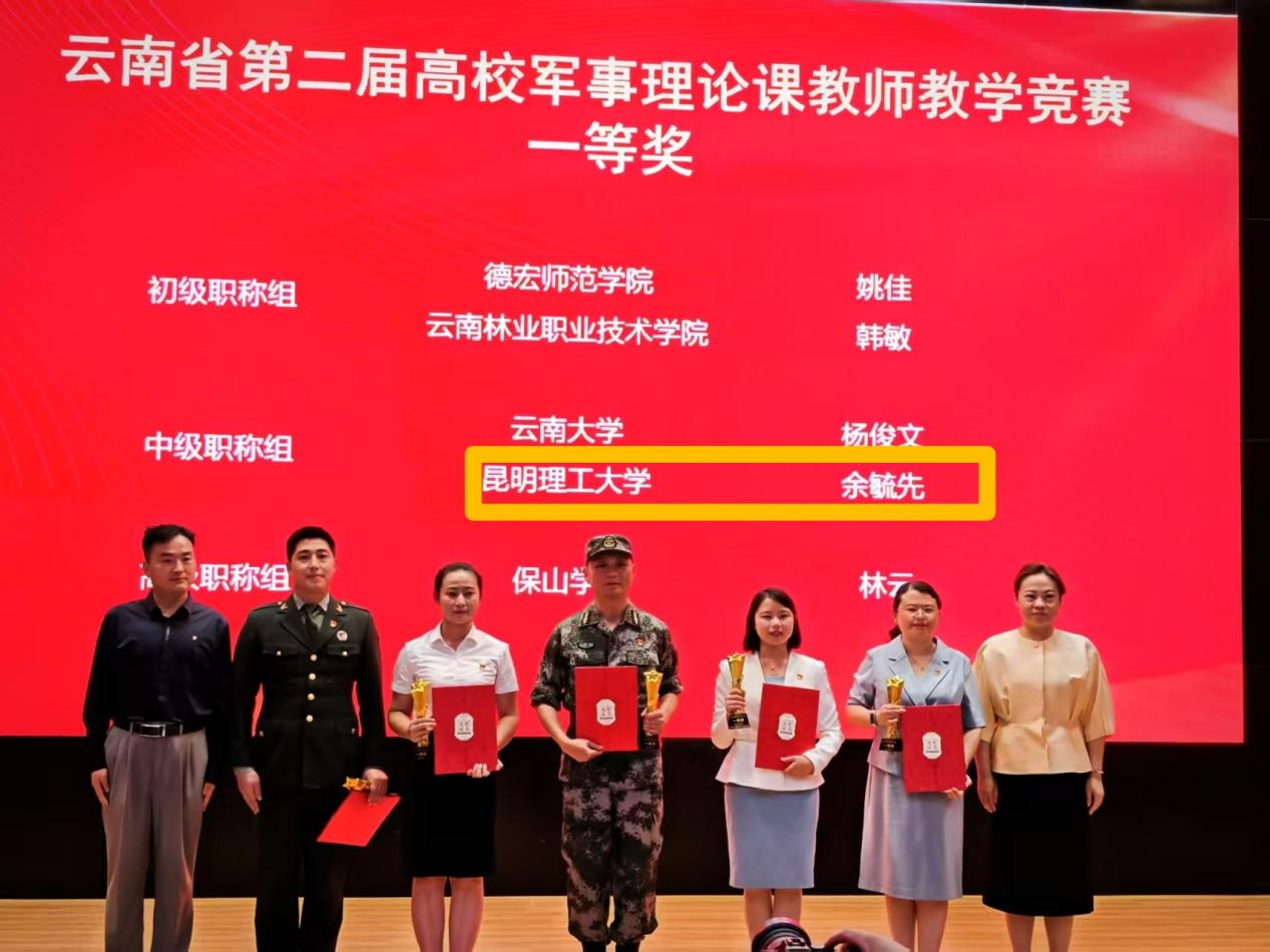 6月26日—27日,云南省教育厅在云南工商学院成功举办了云南省第二届高校军事理论课教师教学竞赛。来自全省58所高校的94名教师踊跃参赛,经过专家的严格评审,21名高校教师脱颖而出,进入决赛。在激烈的竞争中,我校教师余毓先荣获一等奖,董兴华荣获二等奖。