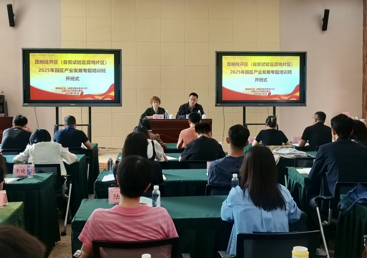 7月 2日上午,由云南工业干部培训基地承办的昆明经开区(自贸试验区昆明片区)2025年园区产业发展专题培训班在三亿体育_三亿(中国)一站式服务官方网站呈贡校区开班。