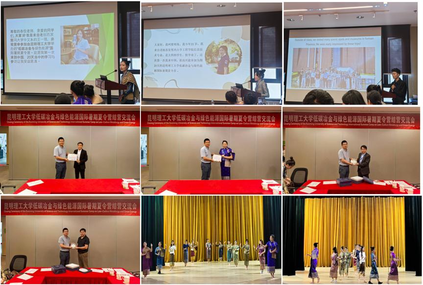 交流结束后,冶金与能源工程学院相关负责人为全体学员颁发了结业证书,肯定了学员们在此次夏令营中展现出的学术探索精神和跨文化协作能力。学院还特别向老挝苏发努冯大学、越南河内矿业地质大学的师生代表赠送了具有云南特色的纪念礼物,象征着中老越三国在低碳冶金与绿色能源领域将持续深化合作、共谋发展。活动最后,老挝学员献上了特色文化表演,进一步促进了两国民族文化交流。
