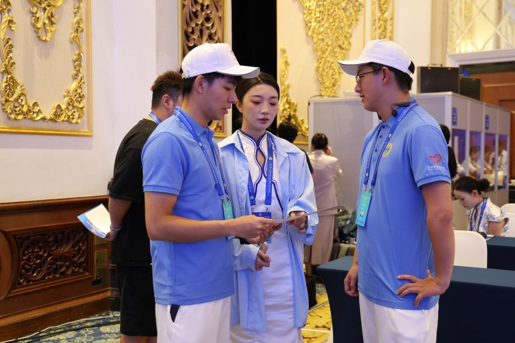 强化政治引领 严把志愿者“入口关”。校团委深刻把握此次会议的国际性、政治性要求,严格对标团省委“优中选优”原则,面对暑期招募难题,联动机电工程学院、信息工程与自动化学院、外国语言文化学院等院系,从150余名候选人中选拔政治素质过硬、专业能力突出的63名志愿者。队伍中党员占比26%,外语水平达标率100%,兼具良好的外语沟通和应急处突能力,成为服务国际舞台的“青年先锋队”。