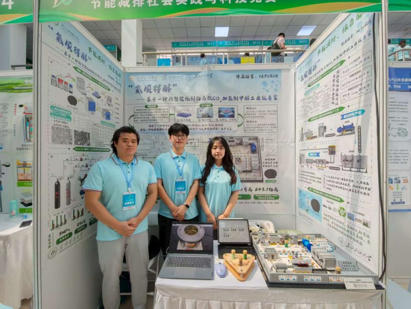 作品介绍:在“双碳”背景下,随着能源短缺加剧和环境问题日益严重,生产甲醇是一种极具吸引力的方式来处理捕获的CO2,从而实现“甲醇经济”,并满足对甲醇的巨大需求。目前,Cu/ZnO/Al2O3催化剂因综合性能优而被广泛应用于CO加氢合成甲醇工业领域,但该催化剂在CO2加氢条件下存在稳定性差、产物选择性低、甲醇时空产率低的缺点。因此,迫切需要研发一种用于CO2加氢制甲醇的高甲醇选择性、具有良好稳定性的新型高效催化剂,以提高甲醇选择性、时空产率和稳定性。故本项目研发了一种用于CO2加氢制甲醇的Fe掺杂Cu-ZnO-CeO2(Fex-CZCe)催化剂,以Fe为助剂改性CZCe催化剂,实现了更高的比表面积、分散度,具有更高的甲醇选择性、时空产率和稳定性。项目以Fe10-CZCe催化剂用于CO2加氢制甲醇可在3 MPa、250 ℃、GHSV = 12000 mL·gcat-1 h−1下实现204.9 g·kgcat-1·h-1的高甲醇时空产率,81.5%的高甲醇选择性,并在105 h运行时间内维持较高的甲醇产率,将其用于双线联动的工业级半自动“催化剂生产-CO2加氢制甲醇”生产体系,可实现年固碳量31.96万吨,年利润2285.4万元,为具有经济效益的工业甲醇合成催化剂提供一种新的替代方案。
