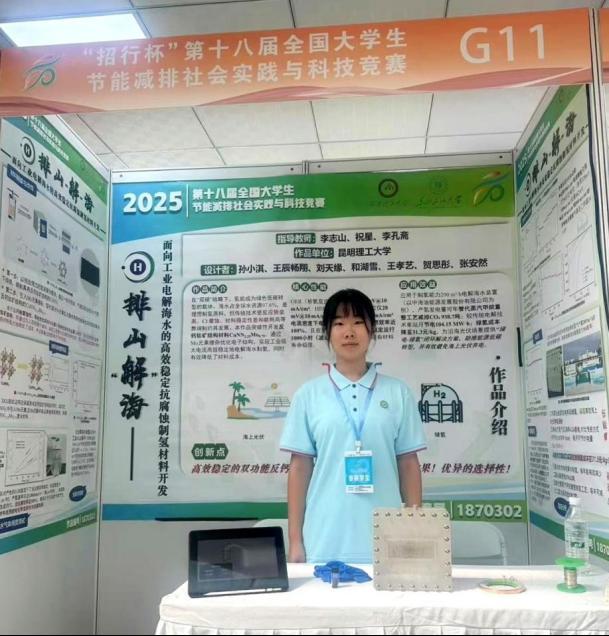 作品介绍:在“双碳”战略下,氢能成为绿色低碳转型的载体。海水占全球水资源97.6%,是理想制氢原料,但传统技术受反应势垒高、Cl-腐蚀、材料稳定性差和能耗高等弊端制约其发展。本作品突破性开发反钙钛矿结构材料CuNNi2.25Mo0.75,通过Mo元素掺杂优化电子结构,实现工业级大电流高效稳定地电解海水制氢,同时有效降低了材料成本。核心性能方面,OER(析氧反应)过电位仅275 mV@10 mA/cm²,HER(析氢反应)过电位仅28 mV@10 mA/cm²;全解海水在500 mA/cm²电流密度下电压低至1.94 V,法拉第效率近100%,且在500 mA/cm²大电流下稳定运行1000小时(波动≤55 mV),远超现有材料寿命极限。本作品若应用于制氢能力200 m³/h电解海水装置(以中海油能源发展股份有限公司为例),产氢发电量可年替代蒸汽甲烷重整工艺减排CO2 938.7吨;较传统电解技术单站月节电104.15 MW·h;绿氢成本降至31.3元/kg,为沿海光伏场景提供“绿电-绿氢”闭环解决方案,助推能源低碳转型,并有效避免海上光伏弃电现象。
