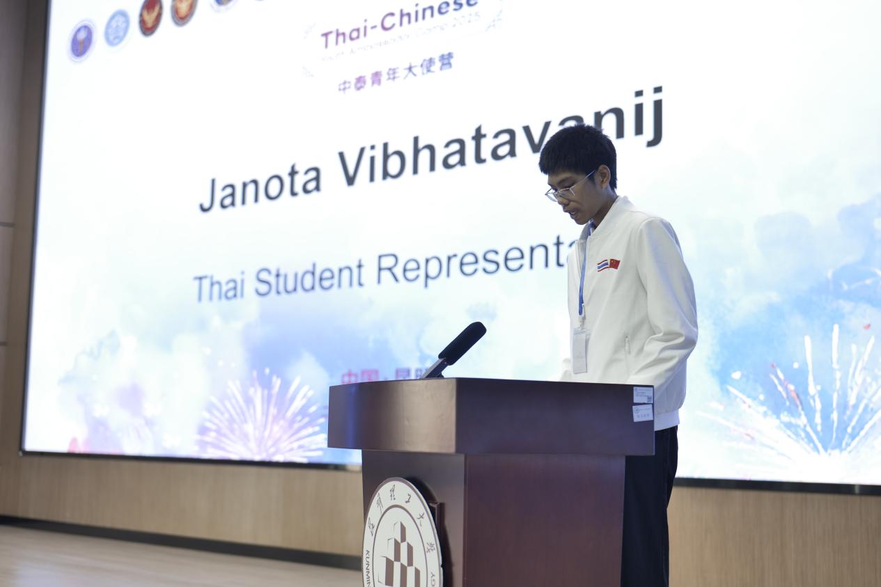 中泰学生代表分享了前期活动中的体验和收获,中方学生代表说,“我们在泰国度过了充实的前半程,两周时间,从南走到北,我们深度体验了泰国的风土人情,亲身感受了什么是中泰一家亲。”