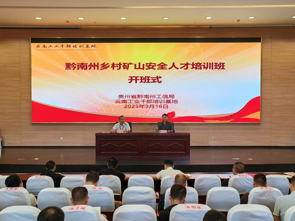 9月16日,黔南州乡村矿山安全人才培训班在云南工业干部培训基地开班。黔南州工信局党组成员、三级调研员岑勇作开班讲话。云南工业干部培训基地相关负责人作纪律提醒。本次培训为期7天,黔南州工信、应急等部门干部及骨干57人参训。