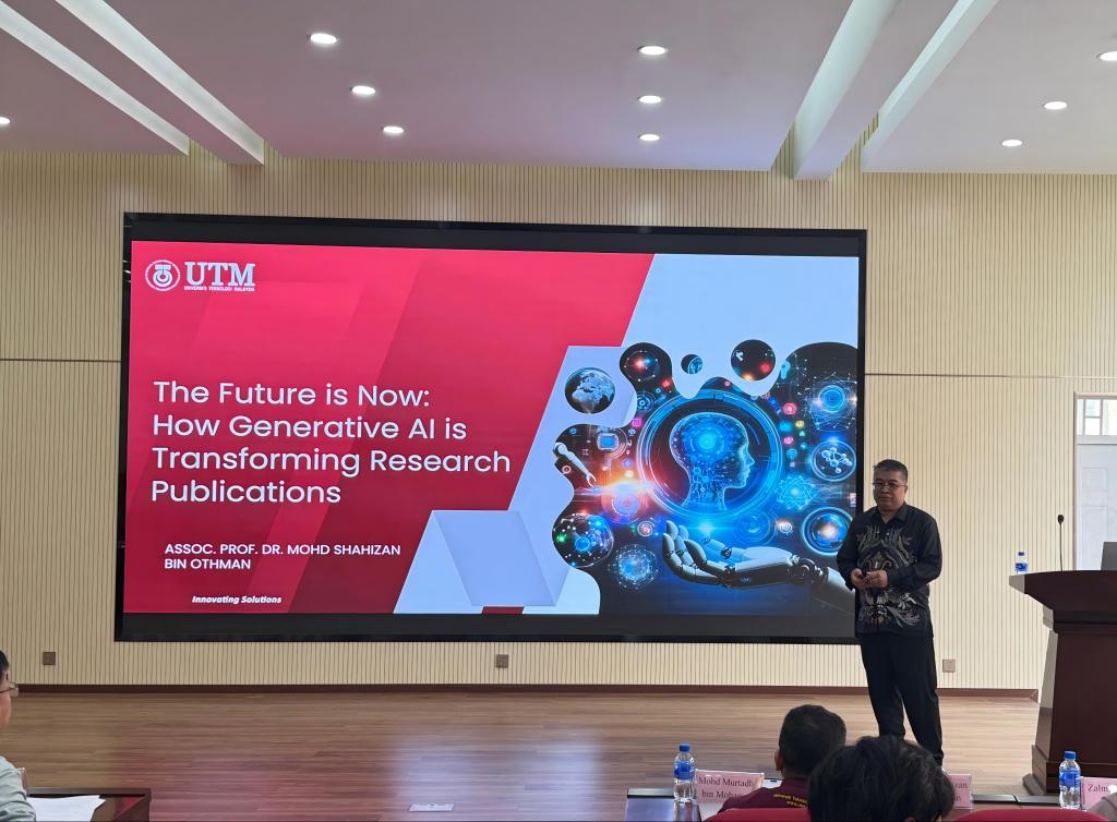 交流期间,马来西亚理工大学计算机学院副教授Shahizan作了题为“The Future is Now: How Generative AI is Transforming Research Publications”(未来已近:生成式人工智能如何重塑科研论文发表)的学术报告;UTM研究生代表同步分享了各自的研究进展。信息工程自动化学院教师代表介绍了学院自主研发的同声传译软件及翻译机。双方就感兴趣的话题进行深入交流,现场学术氛围浓厚。