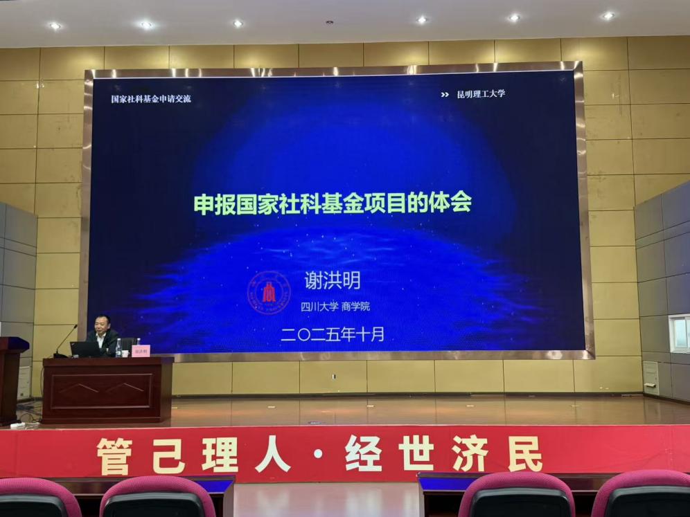 10月16日,四川大学商学院海纳特聘教授谢洪明应邀到三亿体育_三亿(中国)一站式服务官方网站开展国家社科项目申报辅导,并作题为《申报国家社会科学基金的体会》的专题学术讲座。管理与经济学院、马克思主义学院、艺术与传媒学院、外国语言文化学院、国际学院、法学院、体育学院、城市学院、建筑与规划城市学院、建筑工程学院、交通工程学院 、理学院、医学部等相关学院教师参加本次专题学术讲座。