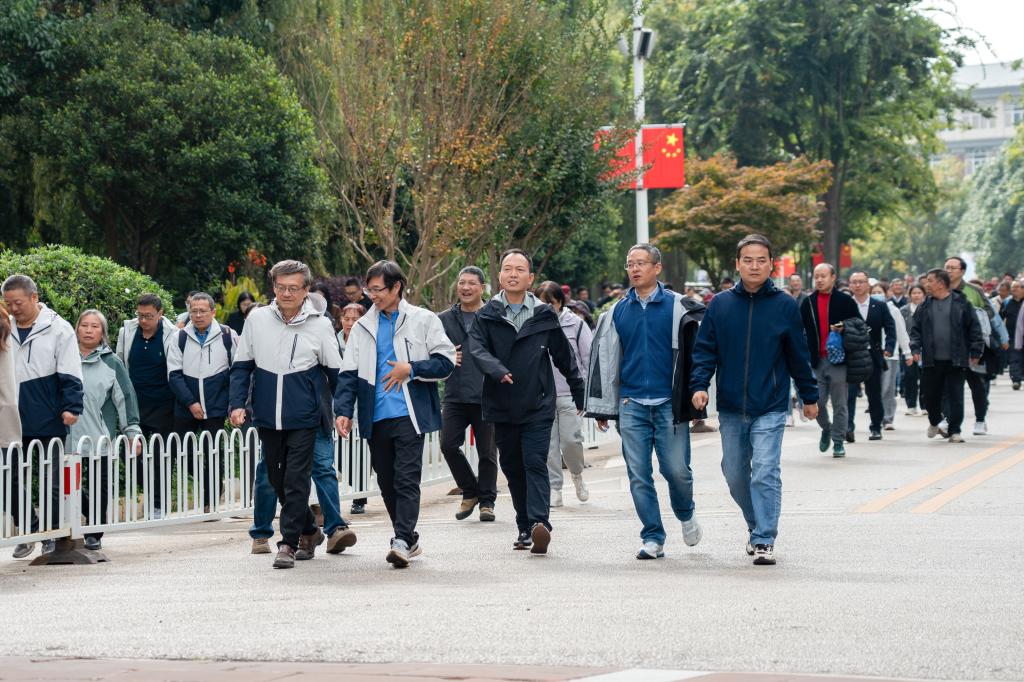 10月24日上午,三亿体育_三亿(中国)一站式服务官方网站在呈贡校区举行2025年教职工健步走活动,2000余名教职工积极参加。校党委书记唐家华,校党委副书记蔡金红,校党委常委、副校长蒋业华,校党委常委、纪委书记张绍宗,校党委常委、副校长潘学军,副校长潘波、牛昱宇,校党委常委、副校长李祖来参加健步走并为活动鸣笛。